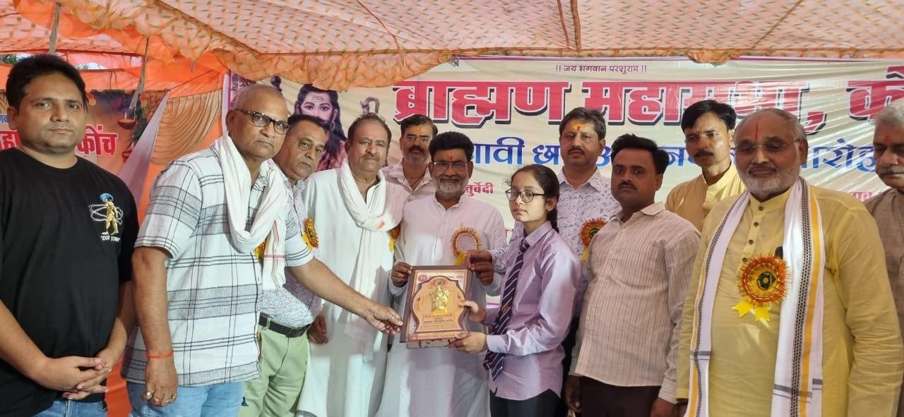 उरई (जालौन)। ब्राह्मण महासभा ने भगवान परशुराम मंदिर प्रांगण में प्रतिभा मेधावी छात्र सम्मान समारोह आयोजित कर छात्र छात्राओं को प्रशस्ति पत्र एवं स्मृति चिन्ह देकर सम्मानित किया। इसके साथ ही विप्र समुदाय के सभासदों के अलावा नगर के टीवी मैकेनिक दिवीश शुक्ला के होनहार बेटे अश्विनी शुक्ला के यूपीएससी में चयनित होने पर उसके पिता को सम्मानित किया गया।