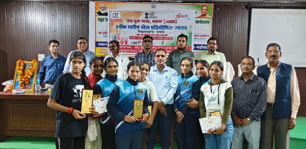 महोबा। वीरभूमि राजकीय स्नाकोत्तर माहविद्यालय में मेरा युवा भारत योजना अंतर्गत विकासखंड स्तरीय खेलकूद प्रतियोगिता का आयेजन किया गया। प्रतियोगिता में जिले के तमाम महाविद्यालय के छात्र छात्राओं ने प्रतिभाग कर अपने खेल का प्रदर्शन कर दर्शकों को तालिया बजाने के लिए मजबूर कर दिया। प्रतियोगि में कबड्डी, खोखो, दौड़ सहित तमाम खेलों के आयोजन किए गए। कबड्डी व खोखो प्रतियोगिता में वीरभूमि महाविद्यालय की टीम ने बाजी मारी। प्रतियोगिता के सभी विजयी प्रतिभागियों को खेल मंत्रालय की तरफ से प्रमाण पत्र ट्राफी देकर सम्मानित किया गया।