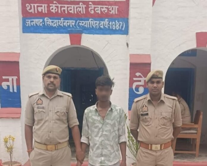 ढ़नी सिद्धार्थनगर। पुलिस अधीक्षक सिद्धार्थनगर डॉ0 अभिषेक महाजन के आदेश के क्रम में एवं अपर पुलिस अधीक्षक सिद्धार्थनगर सिद्धार्थ के निर्देशन में व क्षेत्राधिकारी शोहरतगढ़़ सुजीत राय के कुशल पर्वेक्षण में एवं प्रभारी निरीक्षक ढेबरूआ गौरव सिंह के कुशल नेतृत्व में अपराध एवं अपराधियों के विरूद्ध चलाये जा रहे वांछित अभियान के तहत सोमवार को थाना ढेबरुआ पुलिस द्वारा मु0अ0सं0 72/2025 धारा 109(1) BNS से सम्बंधित वांछित अभियुक्त दुर्गेश उर्फ लाला को दुधवनिया नहर पटरी से गिरफ्तार कर अग्रिम विधिक कर्यवाही हेतु न्यायालय भेजा गया। वहीं गिरफ्तार अभियुक्त दुर्गेश उर्फ लाला पुत्र ध्रुप कुमार निवासी ग्राम खैरी उर्फ झुंगहवा थाना ढेबरुआ जनपद सिद्धार्थनगर है। इस दौरान गिरफ्तार करने वाली टीम में उप निरीक्षक राजाराम यादव, हेड कांस्टेबल विवेकानन्द यादव, कांस्टेबल प्रबल कुमार, कांस्टेबल मनोज पटेल व कांस्टेबल विशाल सिंह मौजूद रहें।