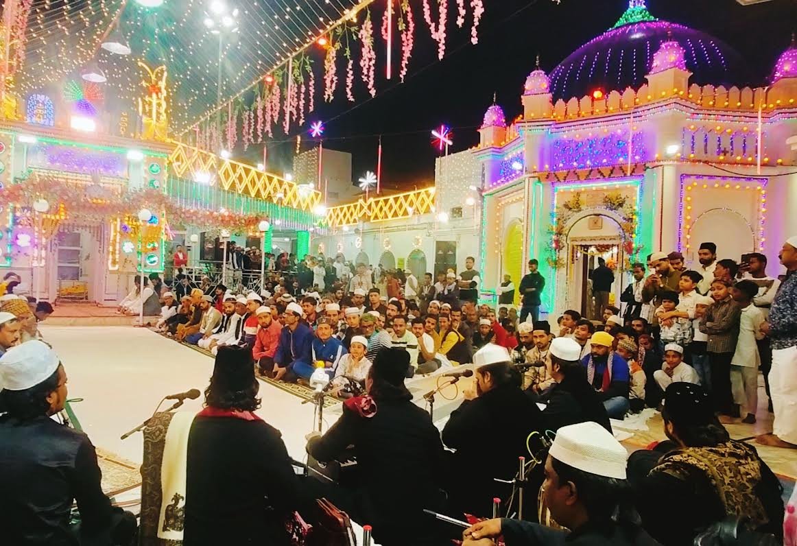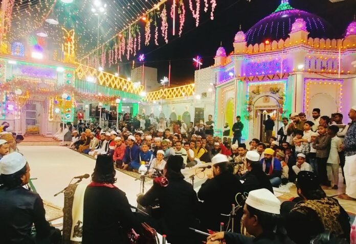 दरगाह वारसी में सरकार वारिसे पाक के कुल शरीफ से पूर्व रात्रि को महफिले सिमा में कलाम पेश करते कव्वाल व मौजूद अकीदतमंद।