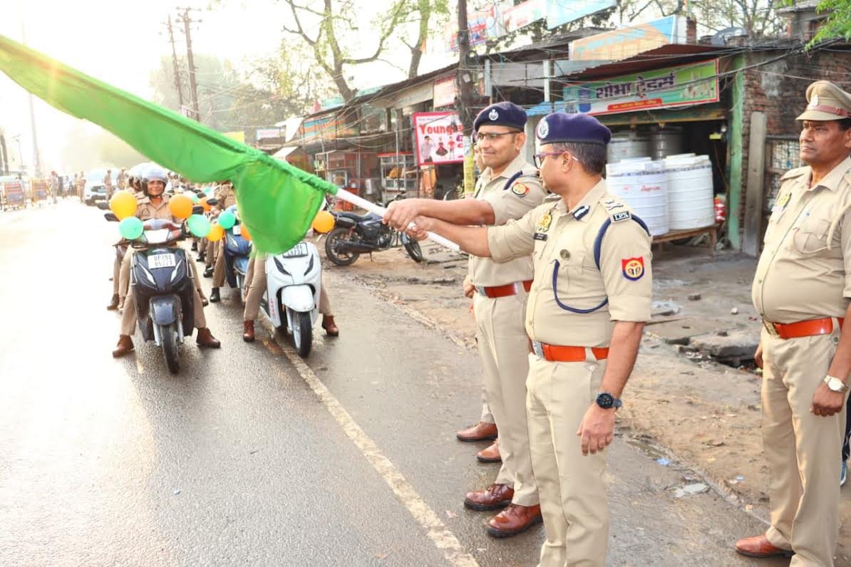 गोण्डा। शासन द्वारा निर्गत निर्देशों के क्रम में प्रदेश में महिलाओं एवं बालिकाओं की सुरक्षा, सम्मान एवं स्वावलंबन सुनिश्चित करने हेतु संचालित “मिशन शक्ति” विशेष अभियान फेज-05 के द्वितीय चरण के अंतर्गत चैत्र नवरात्रि के पावन अवसर पर आज दिनांक 20.3.2026 को जनपद गोण्डा में व्यापक स्तर पर जनजागरूकता एवं सुरक्षा संबंधी कार्यक्रमों का आयोजन किया गया। इसी क्रम में पुलिस महानिरीक्षक देवीपाटन परिक्षेत्र अमित पाठक द्वारा एवं पुलिस अधीक्षक गोण्डा विनीत जायसवाल द्वारा अम्बेडकर चौराहा से गुरु नानक चौराहा होते हुए कोतवाली नगर तक “महिला पुलिस कर्मियों की बाइक रैली” को हरी झण्डी दिखाकर रवाना किया गया।