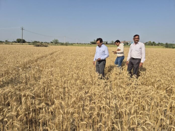 उरई (जालौन)।जिलाधिकारी राजेश कुमार पाण्डेय ने आज रबी सीजन की गेहूं फसल के अंतर्गत क्रॉप कटिंग (फसल कटाई प्रयोग) का स्थलीय निरीक्षण कर व्यवस्थाओं का जायजा लिया। तहसील उरई के न्याय पंचायत बड़ागांव स्थित ग्राम पंचायत बड़ागांव में गाटा संख्या 466 (रकबा 1.3890 हेक्टेयर) पर कृषक अतर सिंह, करण सिंह एवं जाहर सिंह पुत्रगण पुनू की सहमति से वैज्ञानिक विधि के तहत क्रॉप कटिंग प्रयोग संपादित किया गया। प्रयोग के दौरान 43.33 वर्ग मीटर क्षेत्रफल में की गई कटाई से 15.730 किलोग्राम गेहूं की उपज प्राप्त हुई, जिससे खेत की वास्तविक उत्पादकता का सटीक आंकलन सुनिश्चित किया गया। यह प्रक्रिया सीसीई एग्री ऐप एवं रैंडम चयन प्रणाली के माध्यम से संपादित की जाती है, जिससे आंकड़ों की विश्वसनीयता और पारदर्शिता बनी रहती है।