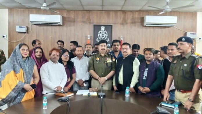 बैठक की अध्यक्षता वरिष्ठ पुलिस अधीक्षक बृजेश श्रीवास्तव ने की बैठक में एसपी सिटी अभय नाथ त्रिपाठी सीओ यातायात राम गोपाल शर्मा सिटी मजिस्ट्रेट राजेंद्र कुमार जिला यातायात प्रभारी सूबेदार सिंह सहित अन्य विभागों के अधिकारी उपस्थित रहे।बैठक में जिला अध्यक्ष संतोष जिला वरिष्ठ महामंत्री हरि गोपाल शुक्ला महिला जिला अध्यक्ष सुनीता कुशवाहा जिला उपाध्यक्ष वीना चौहान महिला जिला उपाध्यक्ष लक्ष्मी कुशवाहा जसवंत नगर अध्यक्ष सुभाष गुप्ता जसवंत नगर महामंत्री विनोद जैन सोनू यादव रेडीमेड संगठन के अध्यक्ष विनोद जैन जिला मंत्री मु.आरिफ महिला संगठन मंत्री अंजू वर्मा आदि प्रमुख रूप से उपस्थित रही।