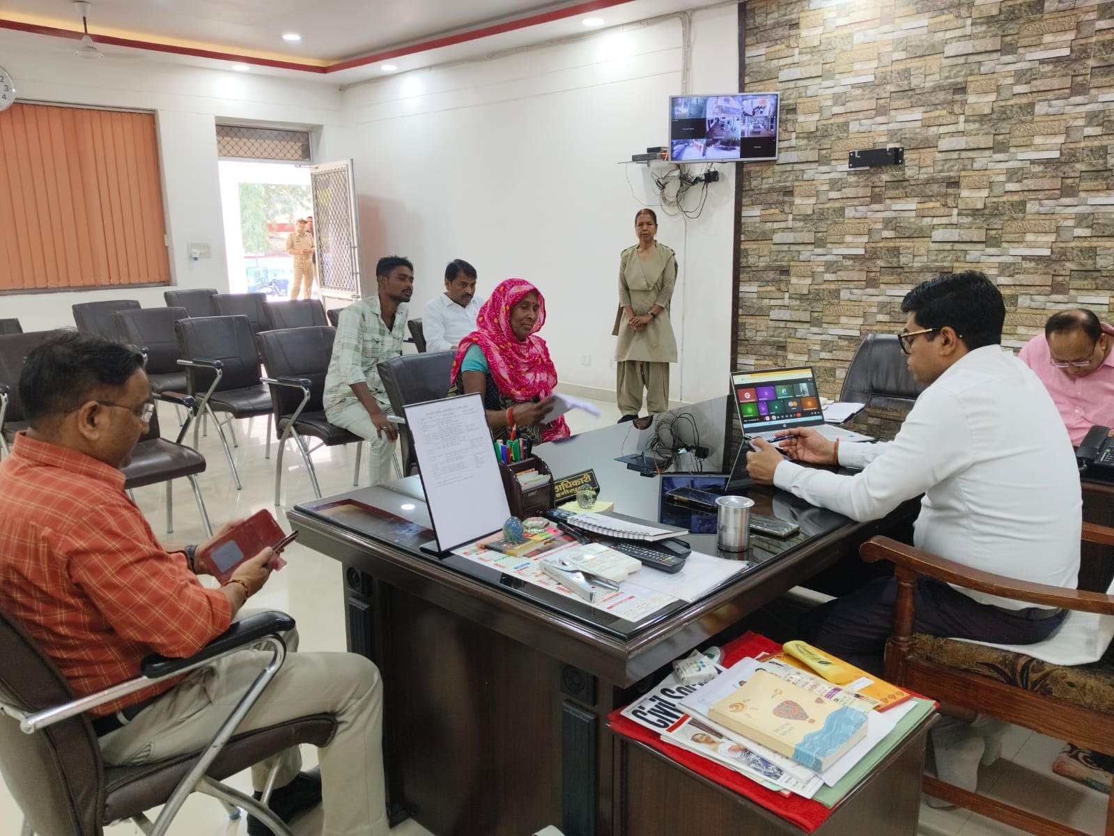 हमीरपुर। कलेक्ट्रेट में आयोजित जनसुनवाई के दौरान जिलाधिकारी घनश्याम मीना ने आम लोगों की समस्याएं सुनीं और संबंधित अधिकारियों को शिकायतों का गुणवत्तापूर्ण व समयबद्ध निस्तारण करने के निर्देश दिए।