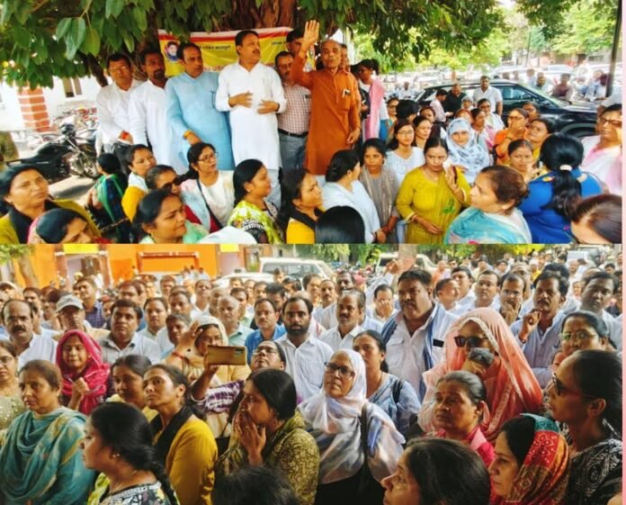 इटावा। उत्तर प्रदेशीय प्राथमिक शिक्षक संघ ने प्रांतीय मंत्री एवम् जिलाध्यक्ष विनोद कुमार यादव के नेतृत्व में हजारों हजार शिक्षकों के संख्याबल के साथ कलेक्ट्रेट में सेवारत शिक्षकों के लिए टेट की अनिवार्यता रूपी काले कानून को वापस लेने के लिए प्रधानमंत्री नरेंद्र मोदी को संबोधित ज्ञापन जिलाधिकारी के माध्यम से प्रेषित किया।ज्ञापन जिलाधिकारी प्रतिनिधि प्रशासनिक अधिकारी देवेंद्र सक्सेना ने लिया।शिक्षकों को संबोधित करते हुए जिलाध्यक्ष विनोद यादव ने कहा कि भारत सरकार ने आर.टी.ई.एक्ट-2009 के अनुच्छेद 23(2)में सन् 2017परंतुक (Proviso)जोड़कर सेवारत शिक्षकों के लिए टेट की अनिवार्यता जैसे काले कानून को थोपकर शिक्षकों के साथ छल किया है।