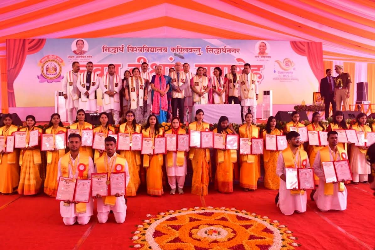 जनपद सिद्धार्थनगर, बस्ती, बलरामपुर, सन्तकबीरनगर के महाविद्यालय शामिल है। कुलपति सिद्धार्थ विश्वविद्यालय ने कहा कि वर्ष 2025 में 69004 छात्राओ का पंजीकरण हुआ है। 2 ओपेन जिम की स्थापना की गयी है। डिजिटल लाइब्रेरी संचालित है। 2 दिवसीय पुस्तक मेला लगाया गया है। स्वास्थ्य केन्द्र विश्वविद्यालय परिसर में संचालित है। गोद लिये गये 5 गांवों में विभिन्न प्रतियोगिताओ का आयोजन किया गया है। कई विश्वविद्यालयो से एमओयू किया गया ।नवम् दीक्षान्त समारोह कार्यक्रम के अवसर पर राज्यपाल आनन्दी बेन पटेल जी द्वारा स्नरातक एवं स्नातकोत्तर में विश्वविद्यालय द्वारा दीक्षान्त समारोह के अवसर पर कुल 37 स्वर्ण पदक एवं प्रशस्ति पत्र, 11 अक्षय निधि डोनर स्वर्ण पदक/प्रशस्ति पत्र देकर सम्मानित किया गया। पीएचडी उपाधि के 32 छात्र/छात्राओ को पीएचडी उपाधि दी गयी। कुलपति प्रो0 कविता शाह द्वारा कुलाधिपति/महामहिम राज्यपाल आनन्दी बेन पटेल, मुख्य अतिथि निर्देशक भारतीय विज्ञान शिक्षा एवं अनुसंधान संस्थान मोहाली पंजाब, विशिष्ट अतिथि मा0 उच्च शिक्षा राज्यमंत्री रजनी तिवारी को ग्रन्थ गुच्छ एवं मोमेन्टो भेट किया गया। कुलाधिपति द्वारा वर्ष 2025 के डिग्री को डीजी पोर्टल पर ऑनलाइन अपलोड किया गया।