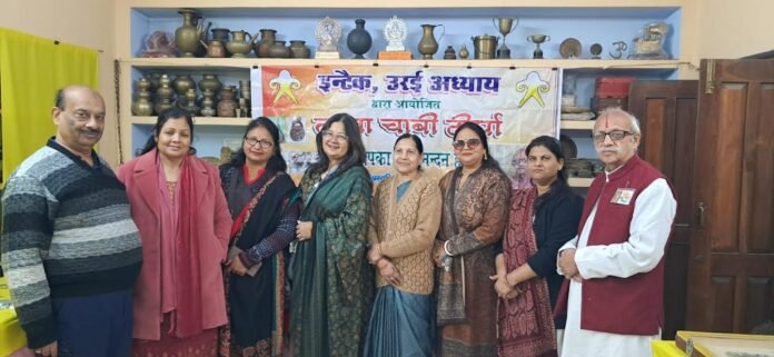 उरई (जालौन)।इन्टैक उरई अध्याय, कानपुर बुंदेलखंड प्रान्त कला धरोहर समिति संस्कार भारती और भारत विकास परिषद स्वामी विवेकानंद शाखा उरई के संयुक्त तत्वावधान में ताला चाबी दीर्घा का उद्घाटन जनपद जालौन की वरिष्ठ महिला चिकित्सक डा0 रेनू चन्द्रा ने शंख ध्वनि के मध्य श्री गणेश जी की प्रतिमा के समक्ष दीप प्रज्वलित कर किया। डा0 रेनू चन्द्रा ने कहा कि इस दीर्घा में प्रदर्शित ताले एवं चाबियां अद्भुत है। ताला चाबी का ऐसा संग्रह वास्तव में दृष्टव्य है। यह दीर्घा हमें हमारी प्राचीन कला और संस्कृति से परिचित कराती है।