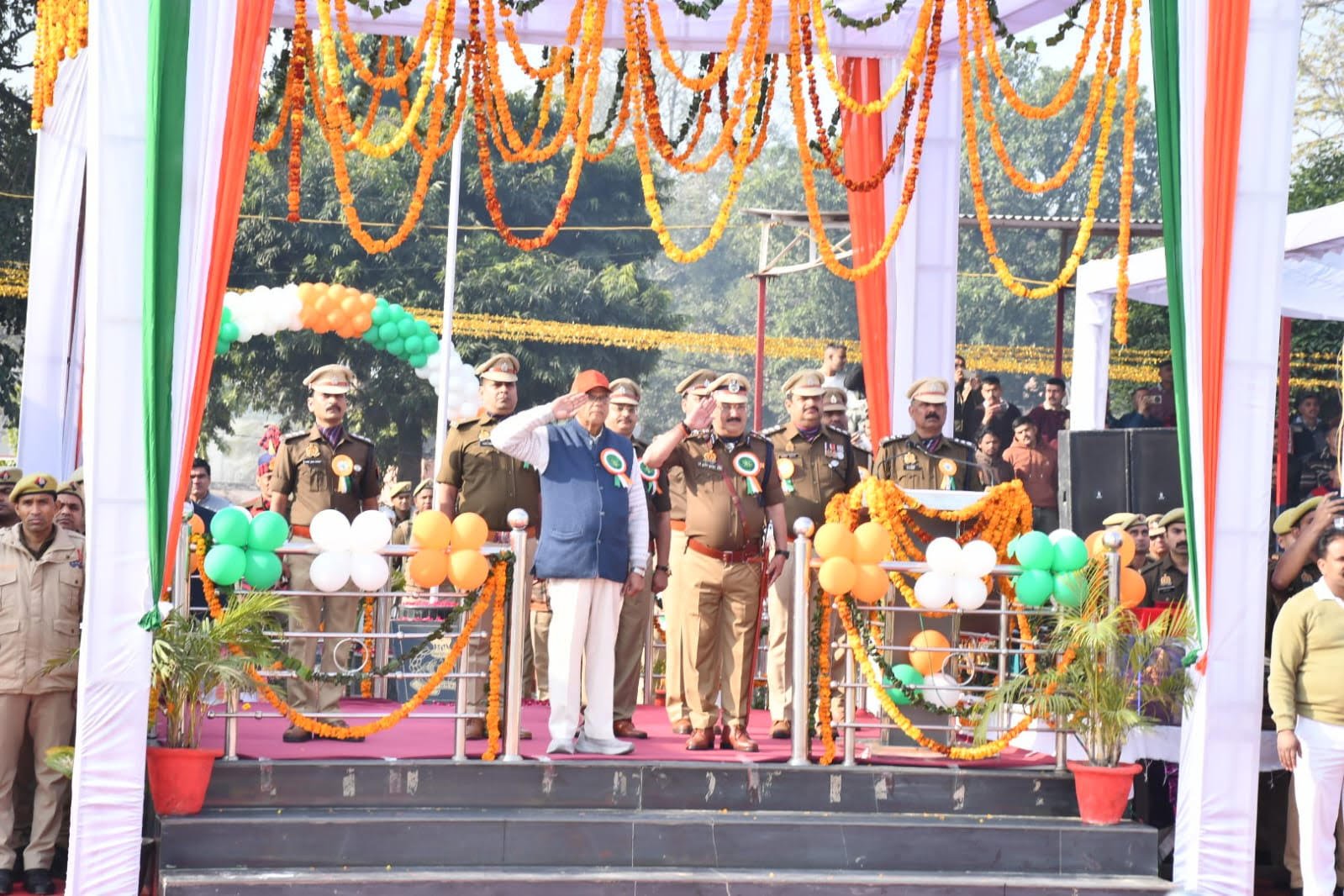 बदायूॅं।77 वें गणतंत्र दिवस के अवसर पर पुलिस लाइन मैदान में आयोजित कार्यक्रम में प्रदेश सरकार के वन पर्यावरण जंतु उद्यान एवं जलवायु परिवर्तन विभाग के राज्य मंत्री स्वतंत्र प्रभार डॉ अरुण कुमार द्वारा ध्वजारोहण कर परेड की सलामी ली गई।