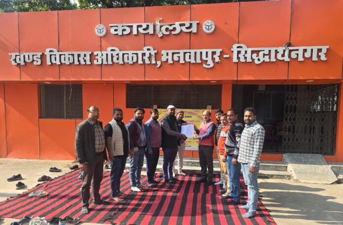 डुमरियागंज सिद्धार्थ नगर। उप्र ग्राम पंचायत अधिकारी संघ एवं ग्राम विकास अधिकारी संगठन ने शुक्रवार को मुख्यमंत्री एवं मुख्य सचिव को संबोधित दस सूत्रीय संयुक्त ज्ञापन खण्ड विकास अधिकारी भनवापुर के माध्यम से जिलाधिकारी सिद्धार्थनगर को सौंपा। ज्ञापन में ग्राम पंचायत स्तर पर तैनात क्षेत्रीय ग्राम सचिवों से मूल दायित्वों के अतिरिक्त बिना संसाधन उपलब्ध कराए अन्य विभागों के कार्य लिए जाने तथा अव्यवहारिक ऑनलाइन उपस्थिति प्रणाली लागू करने पर कड़ा विरोध दर्ज कराया गया है।