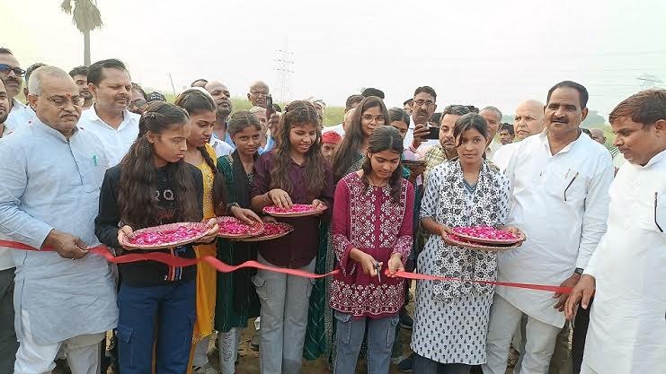मुबारकपुर/ आजमगढ़। मुबारकपुर विधानसभा क्षेत्र के ग्राम सभा जमीन मंझरिया में नवनिर्मित सोलिंग निर्माण रोड का लोकार्पण विधायक अखिलेश यादव की मौजूदगी में गांव की बेटियों नन्हें हाथों कराया गया। जो पूरे क्षेत्र में चारों तरफ चर्चा का विषय बन गया। सठियांव विकास खण्ड के ग्राम सभा जमीन मंझरिया में करीब आठ लाख की लागत से सोलिंग निर्माण रोड लोकार्पण किया गया है l इस सोलिंग निर्माण के हो जाने से आवागमन का मार्ग शुलभ हो गया। ग्रामीणों के मांग पर यह कार्य विधायक निधि से कराया गया है। ग्रामीणों में यह रोड बन जाने से खुशी का माहोल बन गया है।