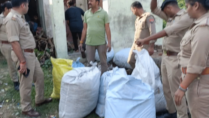 लखनऊ। नगराम कस्बे के पांच घरों में छापेमारी कर मंगलवार को पुलिस ने अवैध रूप से डंप कर रखी गई कई क्विंटल विस्फोटक सामग्री और निर्मित पटाखे बरामद किए हैं। पुलिस ने चार लोगों को मौके से हिरासत में लिया है। पटाखे सहालग और दीपावली में खपाने की तैयारी थी।