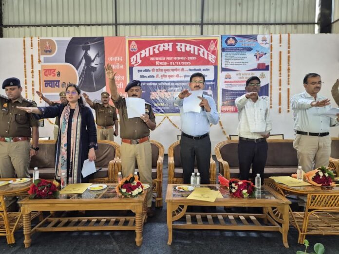 उरई (जालौन)।पुलिस लाइन उरई में सड़क सुरक्षा माह (यातायात माह) का शुभारंभ जिलाधिकारी राजेश कुमार पाण्डेय व पुलिस अधीक्षक डॉ. दुर्गेश कुमार ने संयुक्त रूप से फीता काटकर किया, यातायात जागरूकता वाहन को हरी झंडी दिखाकर रवाना किया।