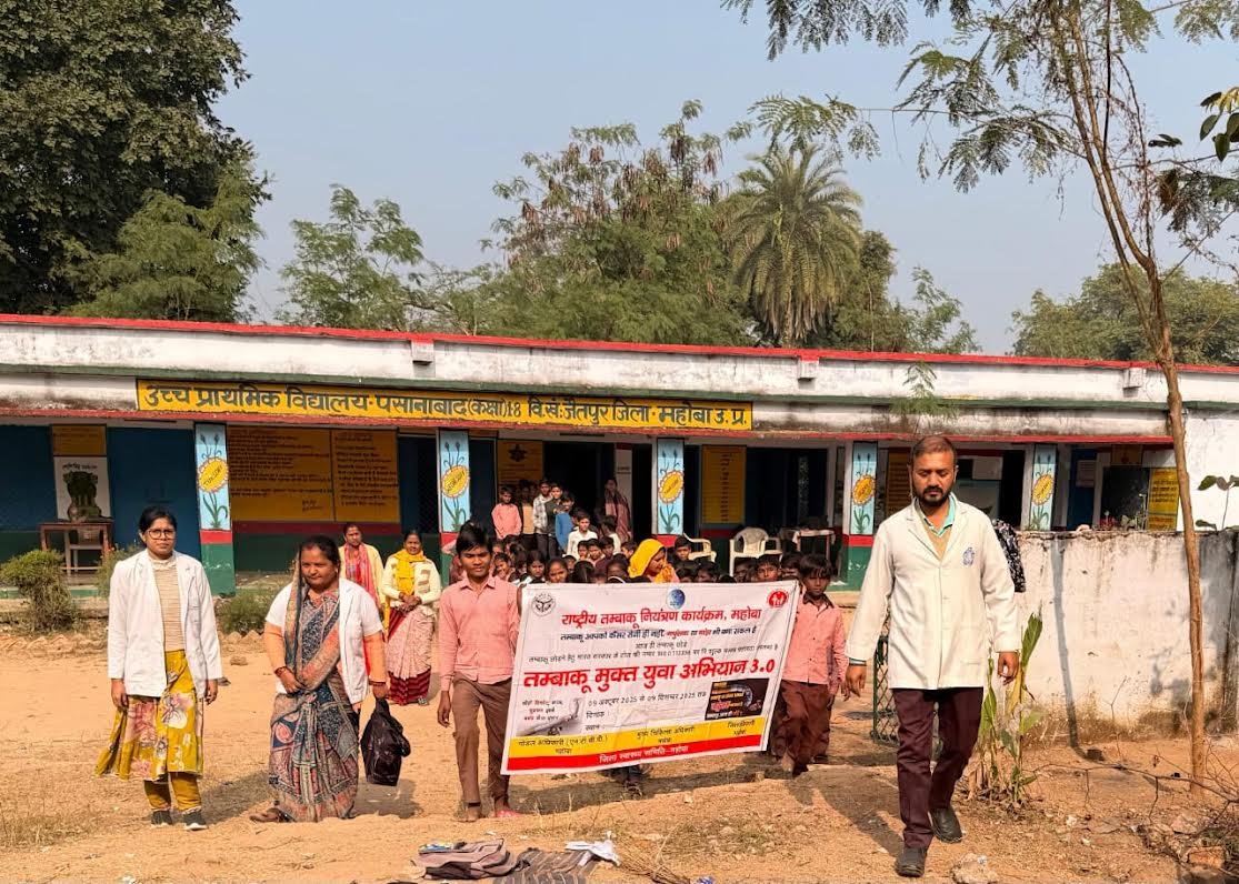 महोबा। विकासखंड जैतपुर के उच्च प्राथमिक विद्यालय पसानाबाद में राष्ट्रीय तम्बाखू नियंत्रण कार्यक्रम के तहत एक युद्ध नशे के विरुद्ध थीम पर तम्बाकू मुक्त युवा अभियान चलाया गया, जिसमें छात्र छात्राओं ने गांव में रैली निकालकर तम्बाकू और नशे से दूर रहने के लिए ग्रामीणों को जागरूक किया। इसके बाद विद्यालय में सीएचसी जैतपुर के अधीक्षक डॉ. पवन राजपूत की अध्यक्षता में एक गोष्ठी का आयोजन किया गया, जिसमें नश मुक्त जीवन जीने के प्रति वक्ताओं ने अपने विचारों से लोगों को प्रेरित किया।