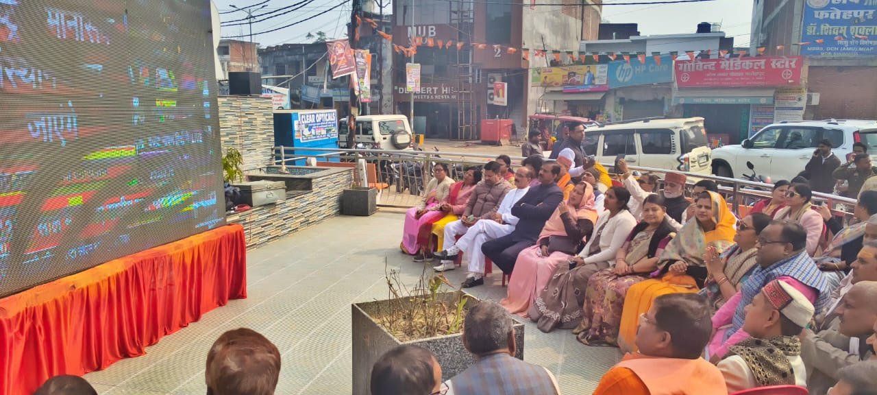 फतेहपुर। केन्द्र सरकार द्वारा लोकसभा में केन्द्रीय बजट 2026–27 प्रस्तुत किए जाने के अवसर पर भारतीय जनता पार्टी (भाजपा) द्वारा पटेलनगर चौराहे पर एलईडी स्क्रीन लगाकर बजट का सीधा प्रसारण दिखाया गया। इस दौरान बड़ी संख्या में भाजपा पदाधिकारी और कार्यकर्ता उपस्थित रहे। कार्यक्रम में मुख्य रूप से भाजपा जिलाध्यक्ष अन्नू श्रीवास्तव, खागा विधायक कृष्णा पासवान, अयाह शाह विधायक विकास गुप्ता, जहानाबाद विधायक राजेंद्र पटेल तथा पूर्व विधायक विक्रम सिंह मौजूद रहे।