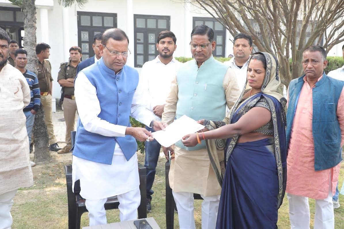 महराजगंज। केंद्रीय वित्त राज्य मंत्री पंकज चौधरी ने महराजगंज स्थित अपने आवास पर आयोजित जनता दर्शन में आमजन की समस्याएँ सुनीं और उनके त्वरित समाधान हेतु संबंधित अधिकारियों को निर्देश दिए। सुबह से ही लोगों की लंबी कतार लगी रही। ग्रामीण क्षेत्रों से आए लोगों ने बिजली, पानी, सड़क, राशन, पेंशन, राजस्व और स्वास्थ्य से जुड़ी शिकायतें रखीं, जिन पर मंत्री ने तुरंत संज्ञान लेते हुए समाधान का आश्वासन दिया। जनता दर्शन के दौरान मंत्री पंकज चौधरी ने स्वयं मतदाता सूची संशोधन से संबंधित फॉर्म भरकर एक महत्वपूर्ण संदेश दिया।