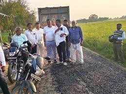 मानक विहीन सड़क निर्माण पर भड़के ग्रामीण उठे सवाल