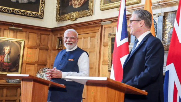 PM Modi Britain Visit: प्रधानमंत्री नरेंद्र मोदी पिछले दिनों ब्रिटेने के दौरे पर रहे। पीएम मोदी का ये दौरा कई मायनों में खास रहा। गुरुवार को पीएम मोदी ने ब्रिटिश पीएम कीर स्टार्मर से मुलाकात की और इसी दौरान ऐतिहासिक मुक्त व्यापार समझौते पर हस्ताक्षर किए गए।