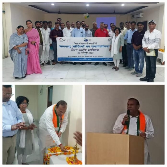 ललितपुर। गोरखपुर एनवायरनमेंटल एक्शन ग्रुप एवं साई ज्योति संस्थान के संयुक्त तत्वावधान में स्थानीय होटल आकाश में जिला पंचायत कार्ययोजना में जलवायु परिवर्तन के समावेशीकरण हेतु स्टेकहोल्डर्स की एवं दिवसीय क्षमतावर्धन कार्यशाला का आयोजन किया गया। कार्यशाला का शुभारंभ मुख्य अतिथि जिला पंचायत अध्यक्ष कैलाश नारायण निरंजन ने दीप प्रज्जवलन करके किया। कार्यक्रम में सन्दर्भ व्यक्ति के रूप में आये विशिष्ट अतिथि डॉ मजहर रशीदी एवं सुश्री अर्चना श्रीवास्तव ने विशेष रूप से उपस्थित रहकर सभी विषयों पर विस्तार से प्रकाश डाला।