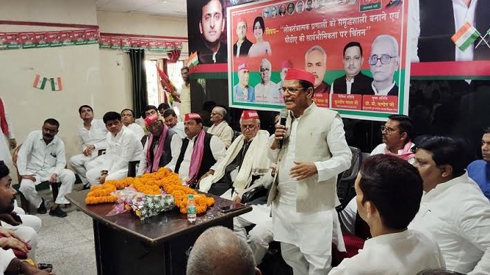 विरोधी दलों के नेताओं को दुश्मनों की तरह व्यवहार करती है। प्रदेश में अराजकता का माहौल बन गया है मुख्यमंत्री जी के सजातीय बंधुओं को अपराध करने की छूट है। दूसरे जातियों के लोगों को फर्जी मुकदमों में बंद किया जा रहा है पुलिस भाजपा के एजेंट के रूप में काम कर रही है। सपा राष्ट्रीय अध्यक्ष का यह बयान स्वागत योग्य है कि सरकार बनने के बाद आजम खान साहब के सभी मुकदमे वापस ले लिए जाएंगे। सपा शिक्षक सभा के राष्ट्रीय अध्यक्ष पूर्व कुलपति प्रोफेसर वी पांडेय ने कहा कि अखिलेश यादव ही ऐसे नेता हैं जो आम जन को राहत दे सकते हैं उनके नेतृत्व में पुनः सन् 2027 में उत्तर प्रदेश में सरकार बनेगी। विधायक डॉ संग्राम यादव ने कहा कि दमन, अत्याचार के बल पर किसी भी आवाज को नहीं दबाया जा सकता आजम खान निर्दोष निडर नेता हैं। उनको जेल में डालकर उनके विचारों को नहीं मारा जा सकता है।